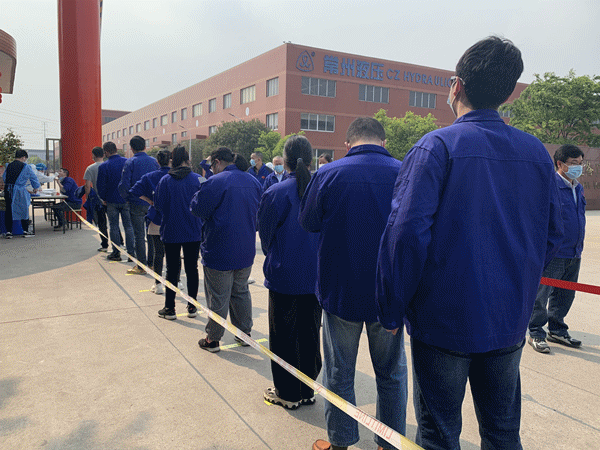 根據(jù)上級(jí)文件精神指示,4月19日下午,常州液壓成套設(shè)備廠有限公司配合開展全體員工及鄰廠單位全員核酸檢測(cè),為安全生產(chǎn)筑牢“防護(hù)墻”。