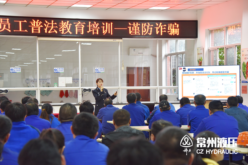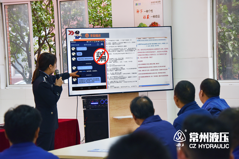 針對當(dāng)前各類詐騙警情持續(xù)多發(fā)高發(fā)、詐騙手法變化多樣的情況,為進(jìn)一步增強(qiáng)企業(yè)員工安全風(fēng)險(xiǎn)防范意識,提高對詐騙信息的甄別、抵御能力,常州液壓成套設(shè)備廠有限公司舉辦謹(jǐn)防詐騙宣教活動,邀請了常州市公安局武進(jìn)分局錢警官擔(dān)任主講,由常州液壓總經(jīng)辦朱主任主持,全體職工參加了此次活動。