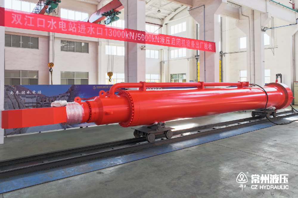 摘要:2023年11月30日至12月1日,四川大渡河雙江口水電開發(fā)有限公司在常州液壓組織進行了雙江口水電站進水口13000/5000kN液壓啟閉機的出廠驗收。常州液壓承制雙江口水電站進水口、溢洪道、泄洪洞、放空洞等共10臺套液壓啟閉機,本次驗收設(shè)備為進水口13000/5000kN液壓啟閉機,共4臺套?!鳴PKY-13000/5000kN-9.8m液壓啟閉機該